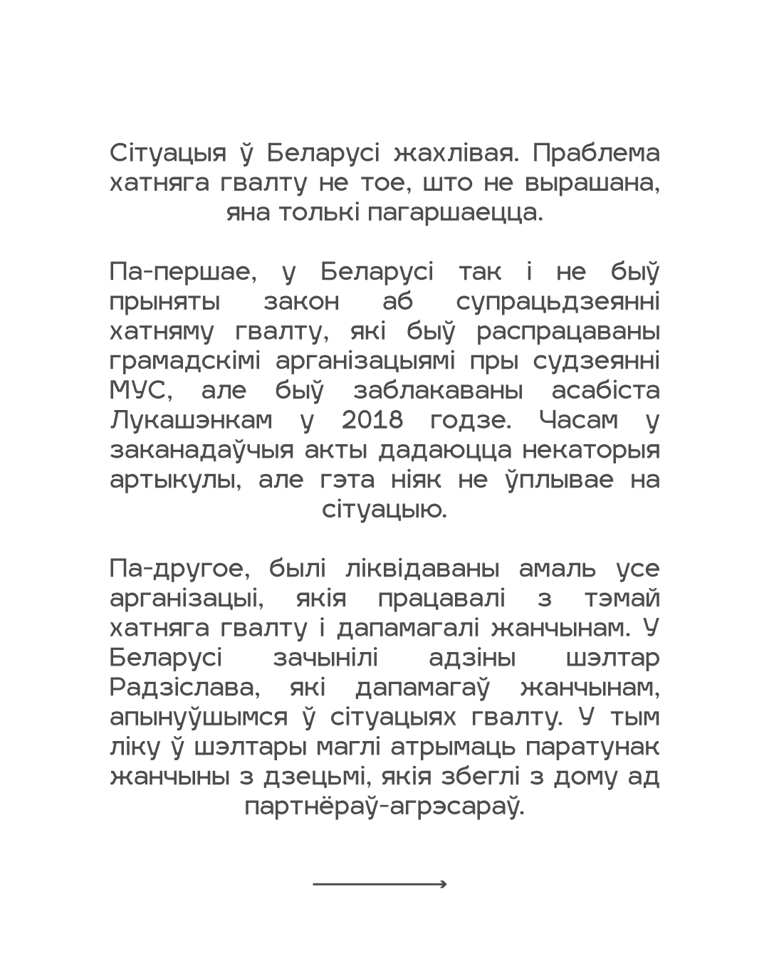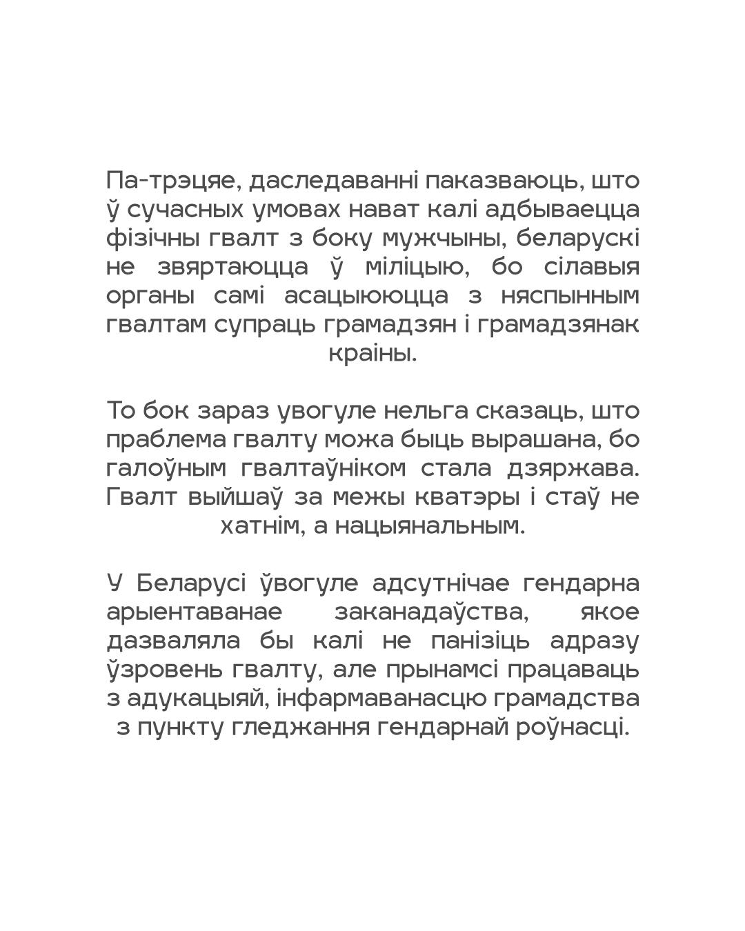 Таму важна кожны дзень памятаць і казаць пра гендарную дыскрымінацыю і парушэнні правоў і паступова рухацца да вырашэння гэтых праблем.