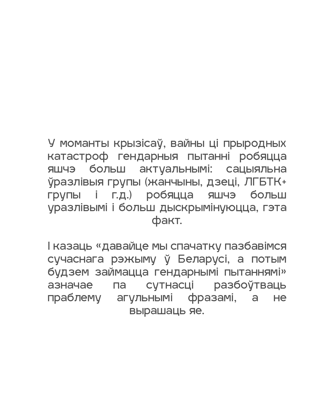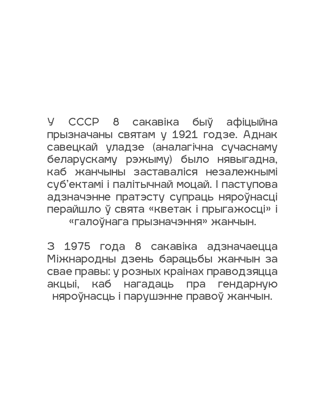 Гендарныя стэрэатыпы і праблемы нікуды не знікаюць. Змаганне за гендарную роўнасць не абмяжоўваецца 8 сакавіка, а працягваецца штодзень.